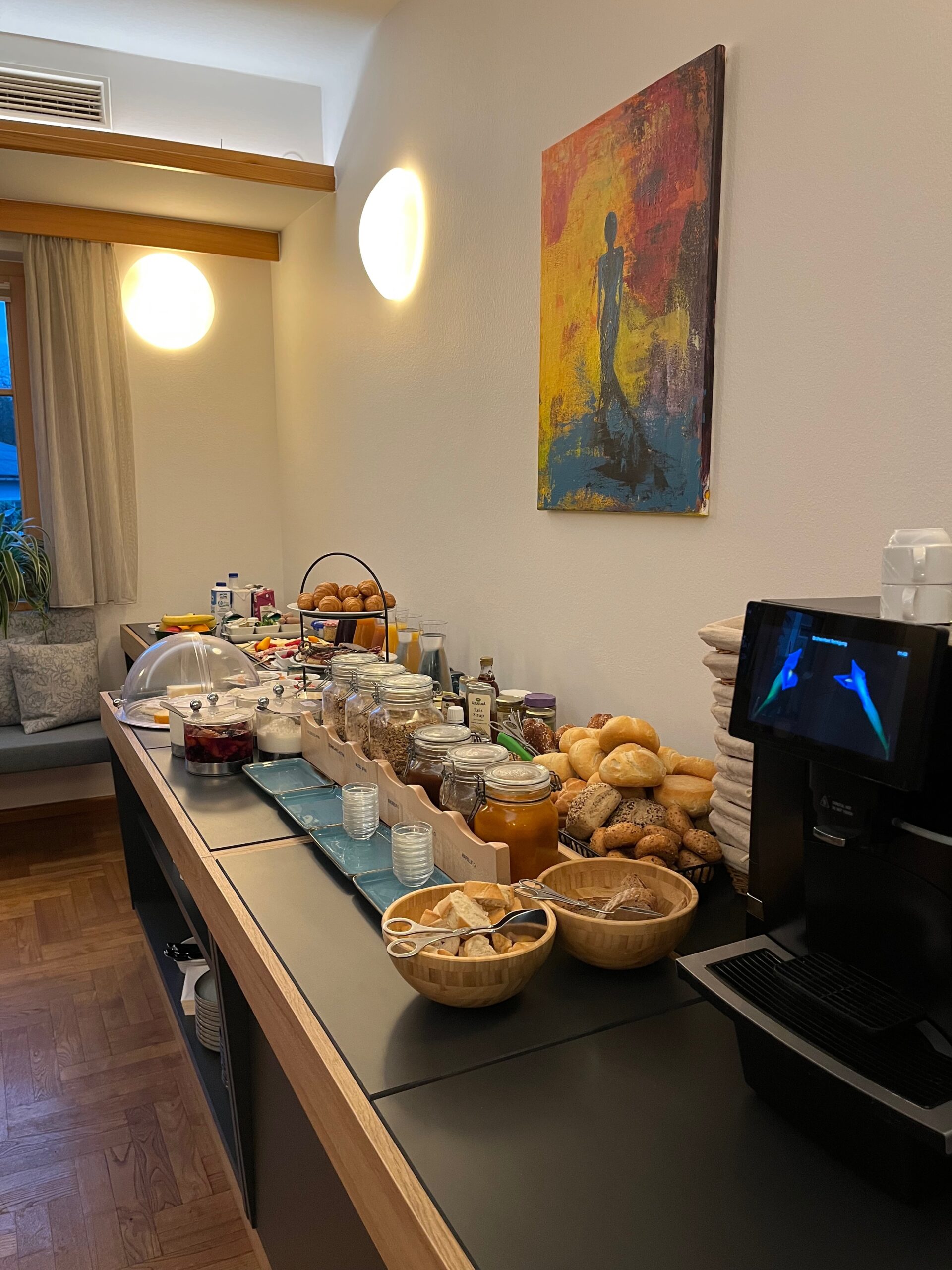 Tauchen Sie ein in die Vielfalt unseres liebevoll zusammengestellten Frühstücksbuffets und starten Sie Ihren Tag mit einem wahren Gaumenschmaus. Egal, ob Sie in einem unserer gemütlichen Zimmer nächtigen oder nicht – wir heißen Sie herzlich willkommen, einen Tisch für ein genussvolles Frühstück bei uns zu reservieren. Unsere Türen stehen Ihnen von Montag bis Mittwoch und von Samstag bis Sonntag von 08:00 bis 10:00 Uhr offen, damit Sie in aller Ruhe Ihre kulinarischen Vorlieben entdecken und genießen können. Bitte reservieren Sie vorab einen Tisch für Ihr Frühstück. Zu den Gästezimmern